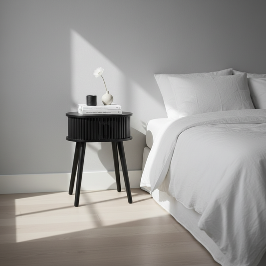 Beistelltisch / Nachttisch - Schwarz - MDF - 40x30x53cm Lamellen oval