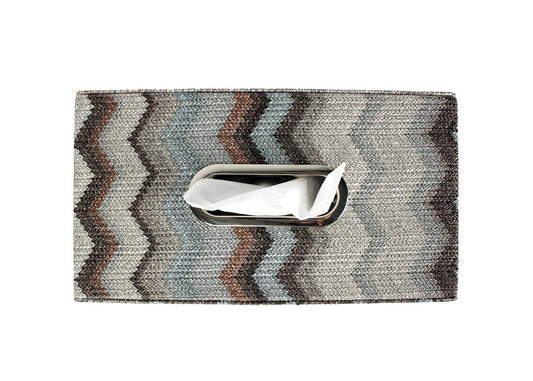 Papiertuchbox Taschentücherbox mit Zickzack Muster Metallgriff bunt gemustert