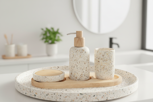 Seifenspender auf Plateau Polyresin Weiß/Natur - 31x13cm