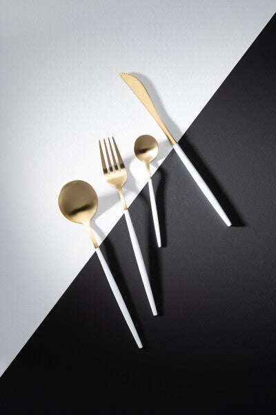 J-Line Besteck Set 24-teilig, Edelstahl mattgold + weiß