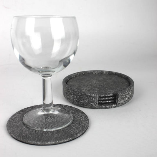 Glasuntersetzer rund 4er Set mit Box Kunstleder Rochen Untersetzer