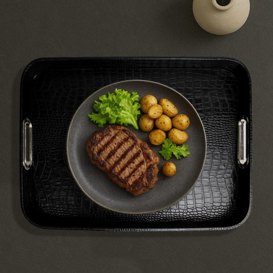 Tablett rechteckig Rand Kroko Kunstleder schwarz Deko