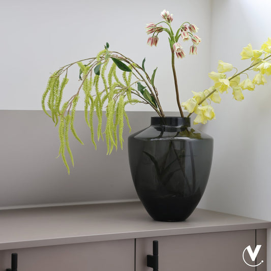 Tischvase Glasvase schwarz matt 29 cm für Blumen Glas