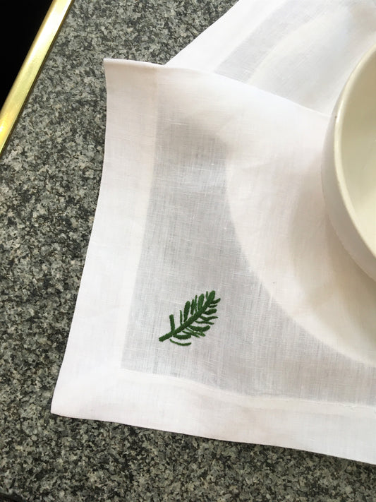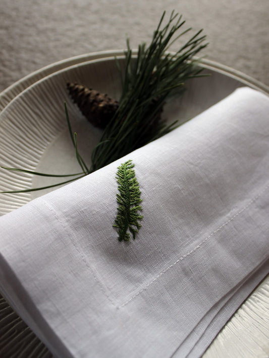 Indradanush Serviette 4er Set Leinen weiß Ilex Tanne Beeren 40 x 40 cm