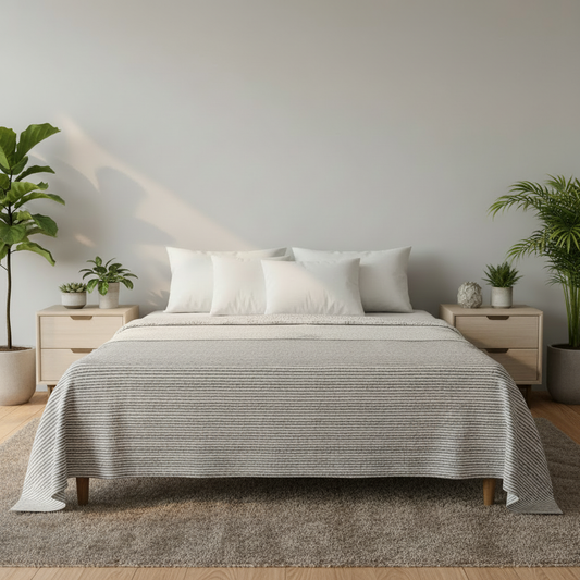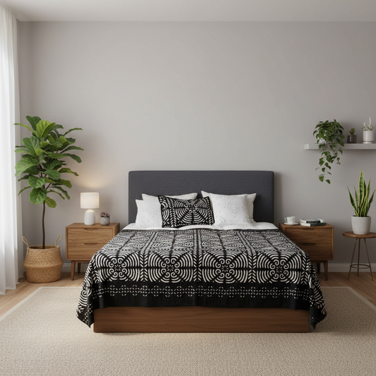 In aufwendiger Handarbeit gefertigte Tagesdecken der Marke INDRADANUSH bilden das Centerpiece für dein Schlafzimmer.