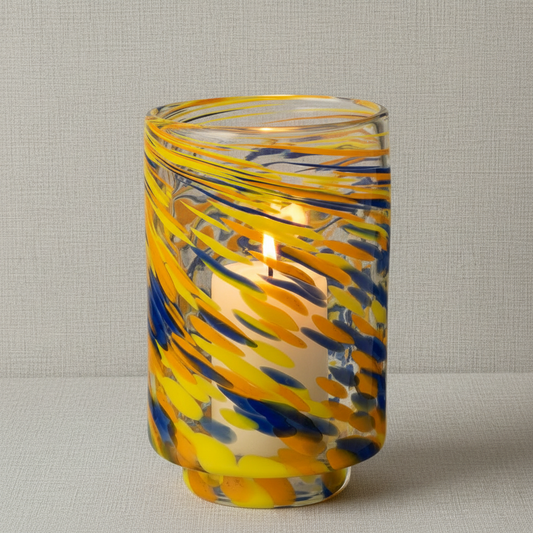 Glasvase mundgeblasen Windlicht bunt gelb 30 cm