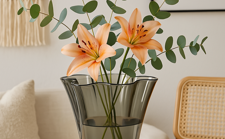 Ob große Glasvase als Blickfang im Wohnzimmer, elegante Vase für den Esstisch oder dekoratives Highlight auf dem Sideboard – Vasen setzen gezielte Akzente und verändern die Wirkung eines Raumes sofort. Transparente, leicht getönte oder strukturierte Oberflächen spielen mit Licht und schaffen Tiefe.